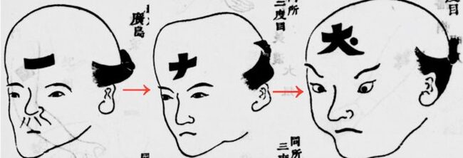 初犯の場合は『一』でそこから1回罪を犯す度に『入れ墨』が書き加えられ、3回罪を犯すと額に