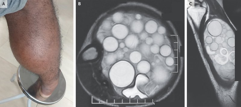 しか〜し、もし腸内でサナダムシの片節の一部が壊れた場合は、中の卵から孵化した幼虫が全身に回り、組織内で楕円形の嚢中(のうちゅう)へと発育する場合があります。